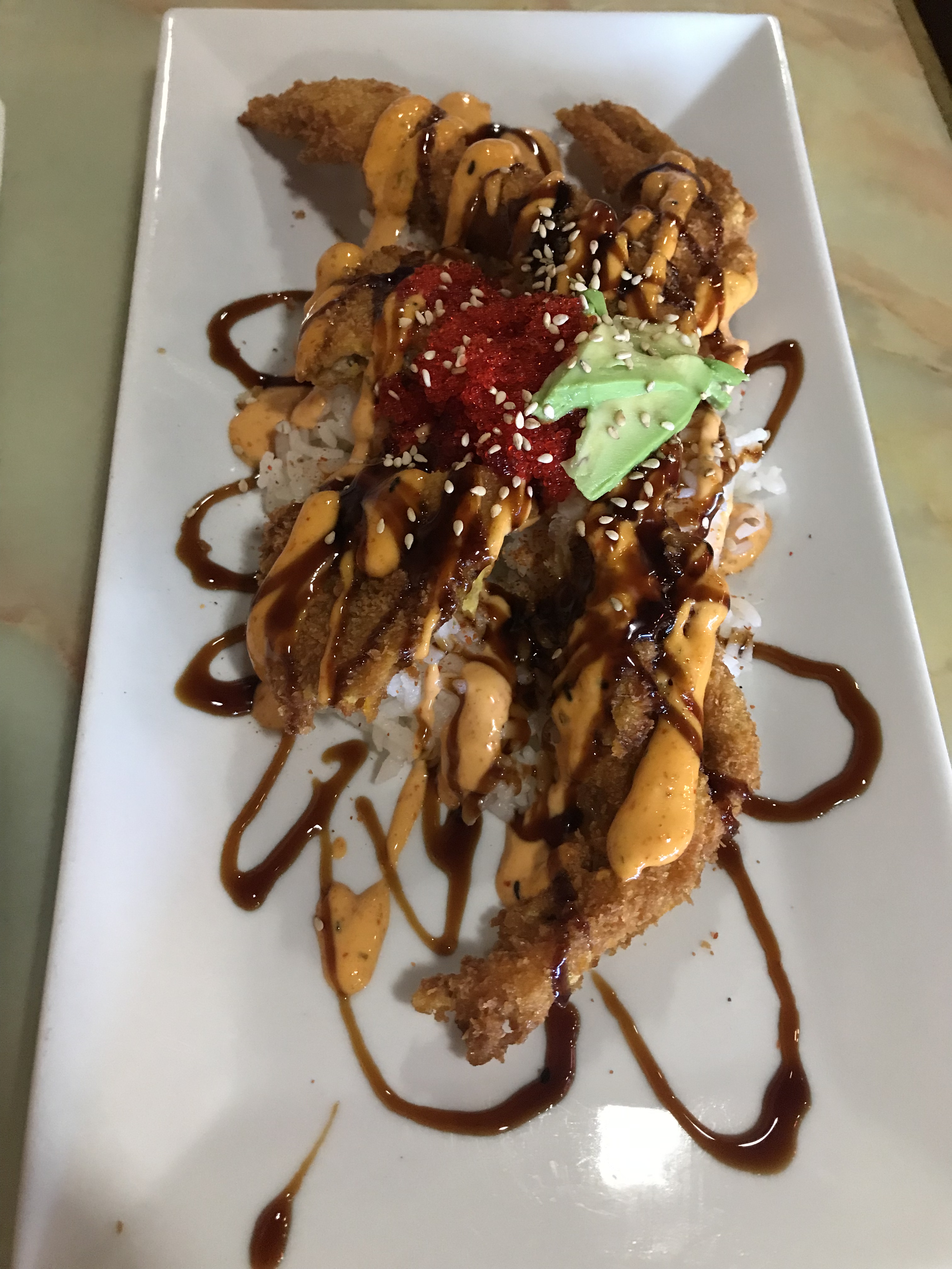 Derek fished off the jetty and I watched tankers come in . I could watch them all day . Simple pleasures I suppose . And sometimes you see big dolphins jumping out of the water . We saw a turtle and nothing was really biting. We attempted another spot and not luck . Went to the farmers market like we use to . And oh man was it busy! And then to Drunkin Hoodlez restaurant.  Pot stickers and firecracker crab , Derek did order Drunkin Noodles . I stuck with honey seaseme chicken.