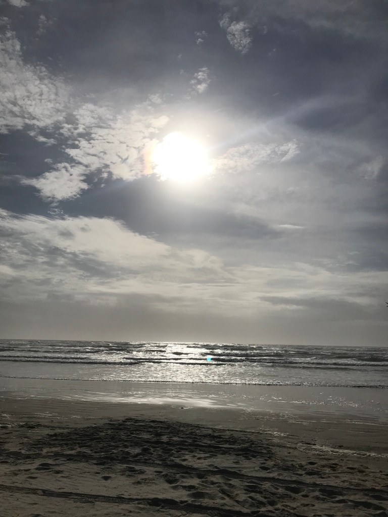 I went walking on the beach and taking photos, while Derek used up the rest of his bait. Someone found a face in my photo. That was odd. Then we went for a drive along Ocean Dr. and on to Texas A&M Campus and Derek kept asking which office was mine. Well sorry there are no jobs posted in my area of knowledge so none of them are.  But there campus is on an island of it’s own  . No other college can say that. So  lucky salt area everyday and waves crashing wash away bad days anytime you had one.  I mean you don’t always get  good ones Right ?