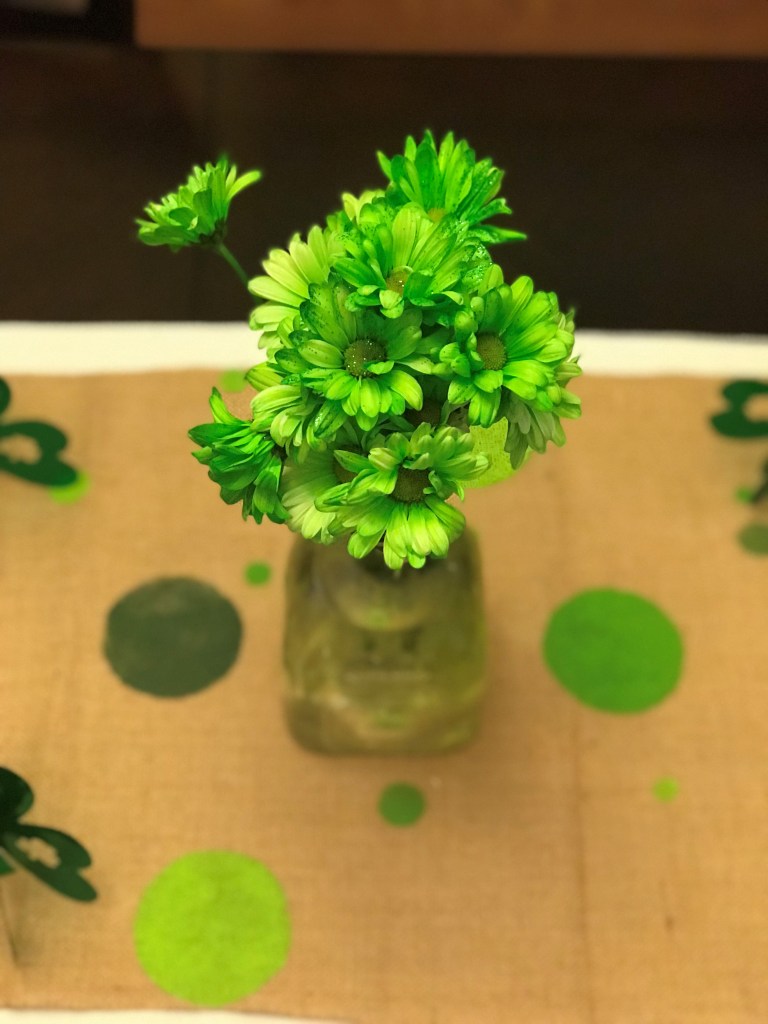 St. Patrick’s day table is set , groceries are bought. I was not planning on a breakfast . But 3 ladies asked about green pancakes and who am I tell them no. And Derek well never say no . So I would not technically call it a brunch I did not send out invites . And lets face it the house is always decorated. There will just be green food tomorrow. Oh no ! I need my china ! Oh Derek , Pookie I need your help. okay back to Maybe I should do a Eater brunch for all the girls. I haven’t done one in like a year. Last time they were so loud and giggled and laughed oh they sounded like they had so much fun . I’ll need to look at a calendar.