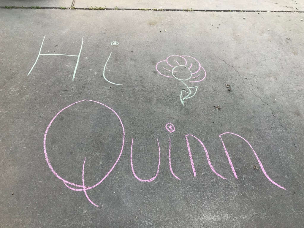 The children in the neighborhood seem to have PE every afternoon it entertaining in my office . And after Derek has lunch we seem to go for a walk and we find their art class time all over the sidewalks . Which we are rather fond of. I still walk in the morning with Yvette and in the evening usually by myself. We attempt the trail . But since they closed the KOA . People are starting to go there so going to my mothers . There are NO people . and it’s very quiet except for the donkey’s .