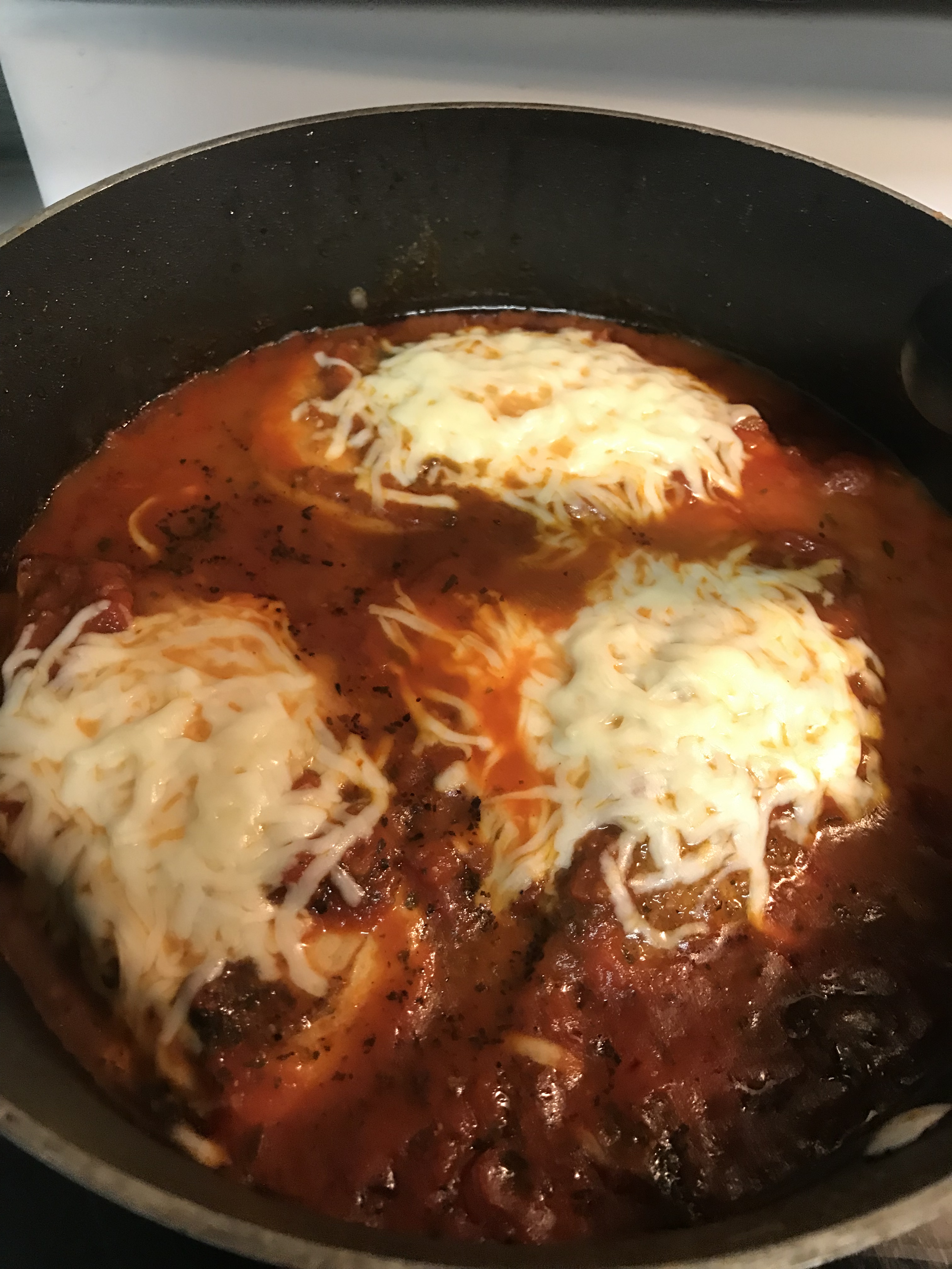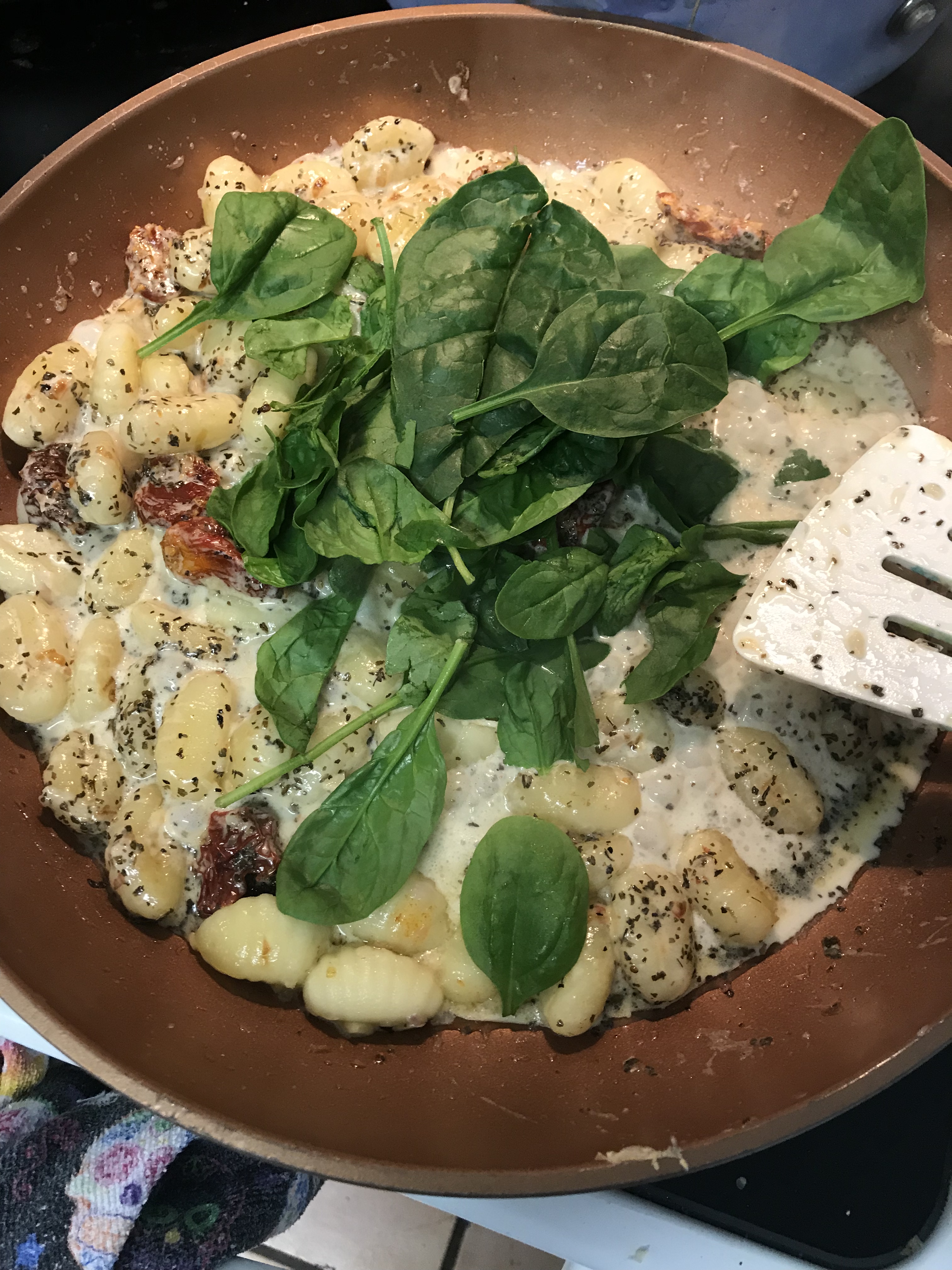 So it was homemade marinara and chicken with melted mozzarella . And then Gonochi with a garlic spinach cream sauce . And I admit I was scared to eat it . But it was pretty yummy . It’s a do over meal for sure. My house smelt so good. I wish I had made bread . I mean if your going to carb it up you might as well go all the way . And there was no dessert sadly .  and honesty I didn’t eat that much of it . I woke up starving Sunday morning. And yet there was no breakfast .